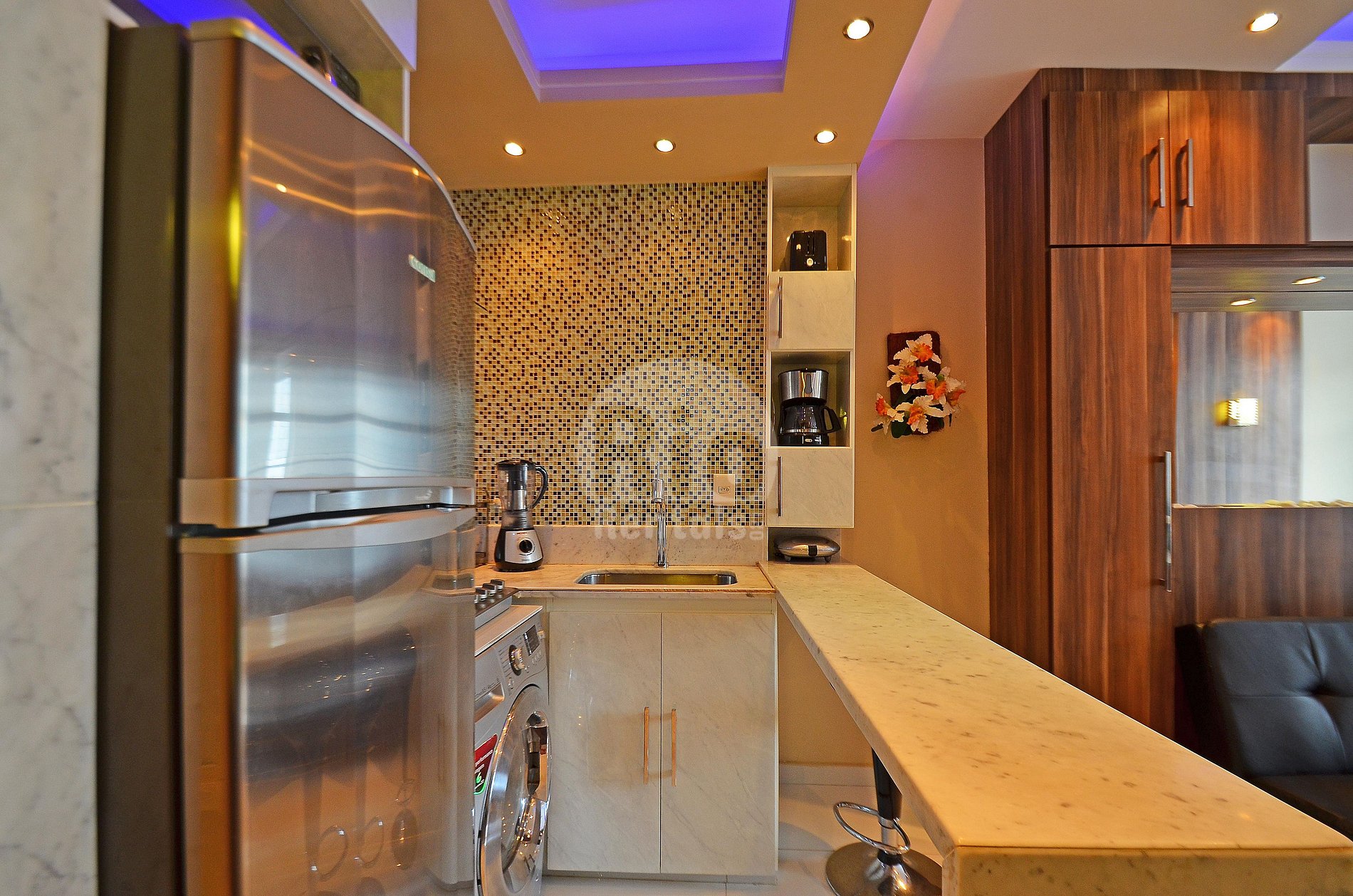 Adorei o fato de ter uma maquina de lavar e secar, isso facilitou muito para mim, por estar com 3 malas e nao precisar ficar acumulando roupas sujas na mala. Excelente.